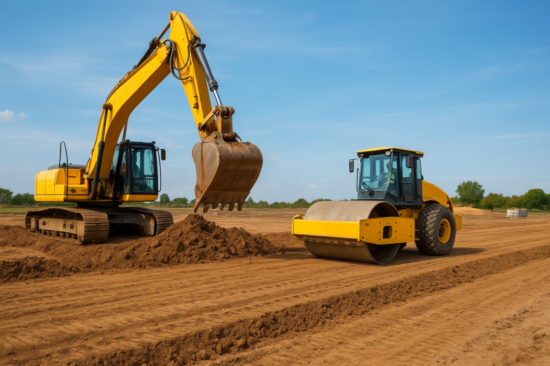 Nuestro servicio en Geoobras incluye todas las etapas necesarias para preparar el terreno: limpieza del área, desmonte, excavación, relleno con materiales seleccionados, nivelación y compactación. Cada proceso se realiza con maquinaria de última generación —retroexcavadoras, motoniveladoras, rodillos compactadores y camiones volcadores— asegurando un trabajo rápido, seguro y dentro de norma.