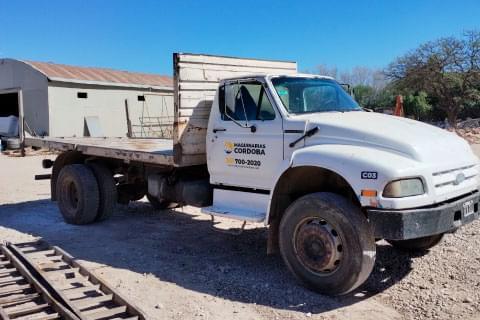 Camión rígido con plataforma libre que permite la carga y descarga por cualquiera de sus lados.