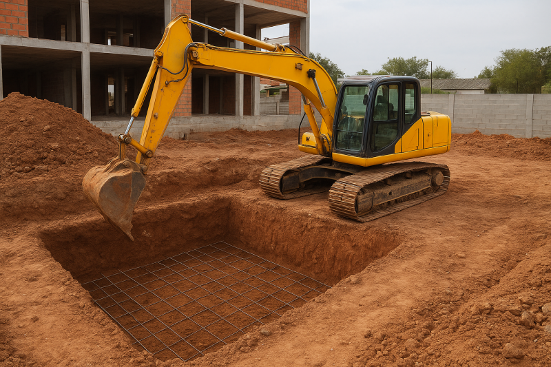 La excavación de sótanos es una tarea fundamental en proyectos residenciales, comerciales e industriales, ya que permite aprovechar el espacio subterráneo para cocheras, depósitos o áreas técnicas. Para ello, realizamos un estudio geotécnico previo, determinando la profundidad, tipo de suelo y nivel freático, lo que asegura un trabajo eficiente y seguro.